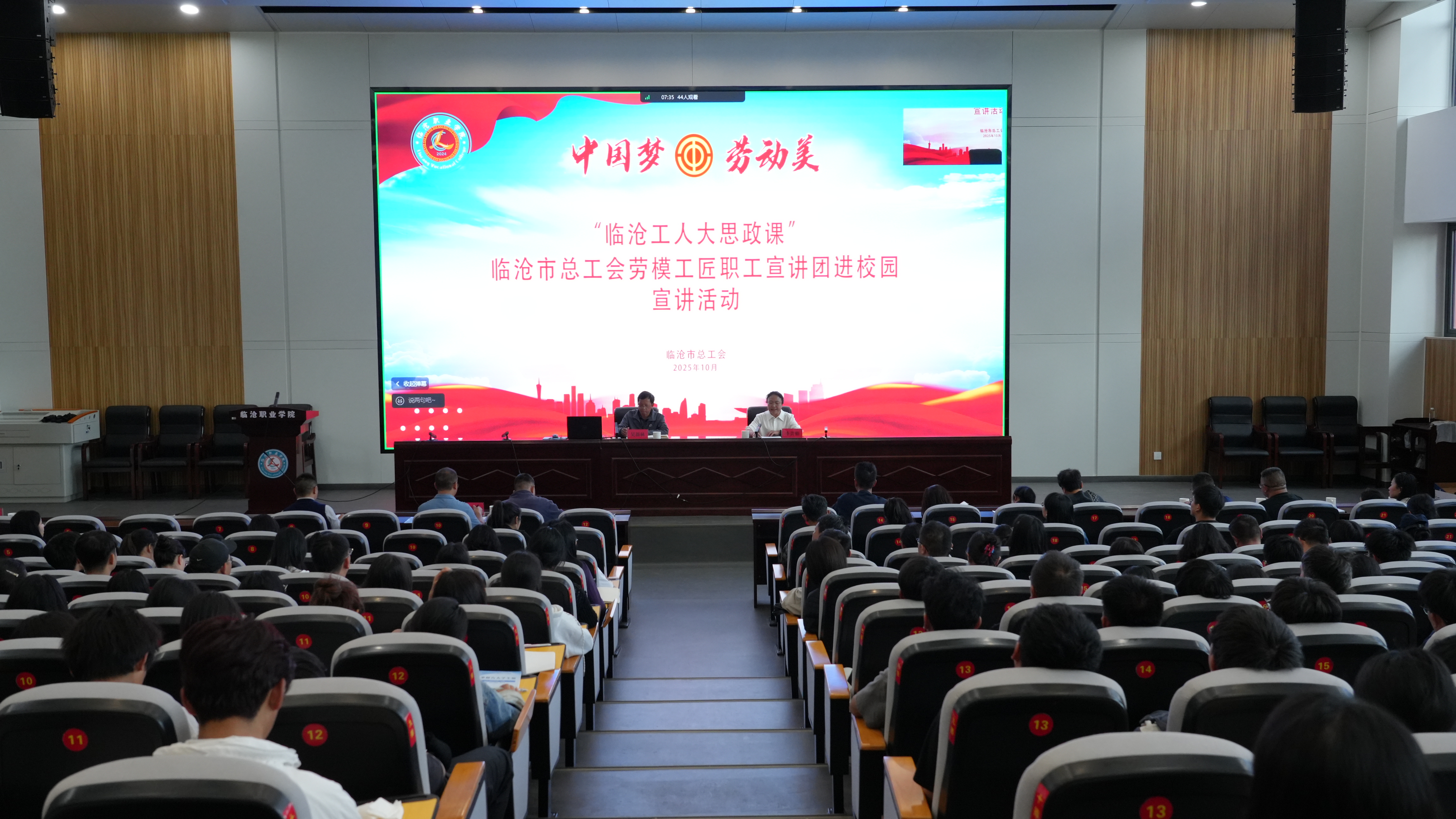 2025年10月29日,临沧市总工会“劳模工匠职工宣讲团”走进PP电子游戏网站,开展“弘扬劳模精神、劳动精神、工匠精神”主题宣讲活动。活动以线上线下结合方式覆盖全校1700余名师生。